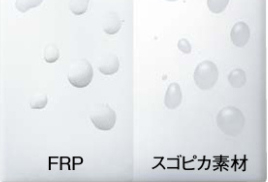 パナソニックのシステムバス・システムキッチン・洗面ドレッシング・トイレには有機ガラス系素材が搭載されています。有機ガラス系素材とは、水アカ汚れに強い、撥水性に優れた素材で、飛行機の窓や水族館の水槽にも使われています。1986年に浴槽の素材として初登場して30余年、確かな品質で多くの方に長くお使いいただいています。