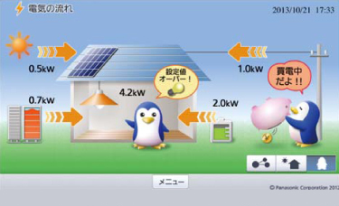 右の図は実際の電気の使用量をモニターで表示しています。