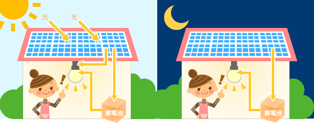 太陽光発電システムと連携し、太陽光発電によって創った電気を蓄電池に貯めて使用することもあります。
