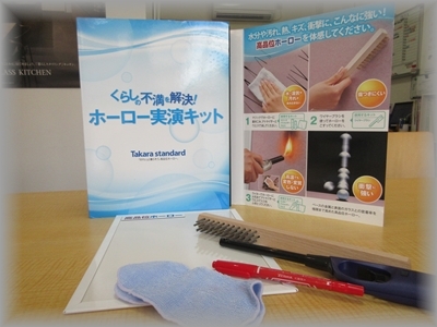 MDリフォームでは、高品位ホーローの特徴をお客様自身で体感していただけるキットをご用意しています。いつでもご来店下さい。