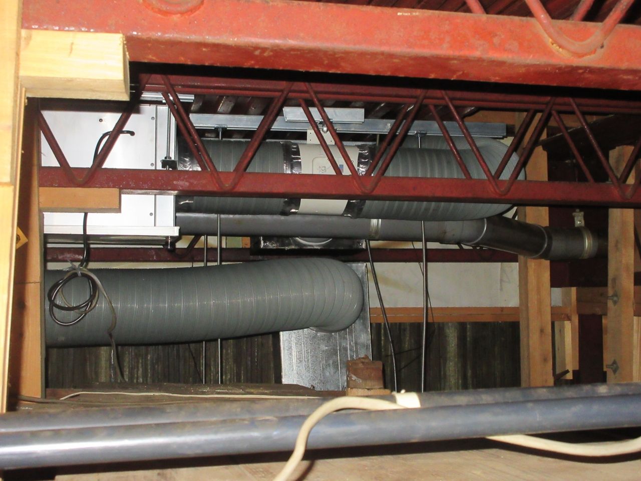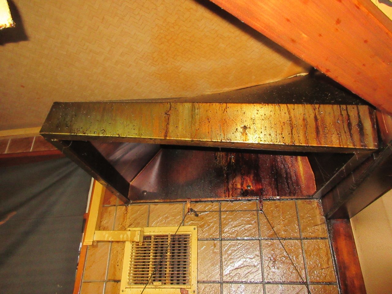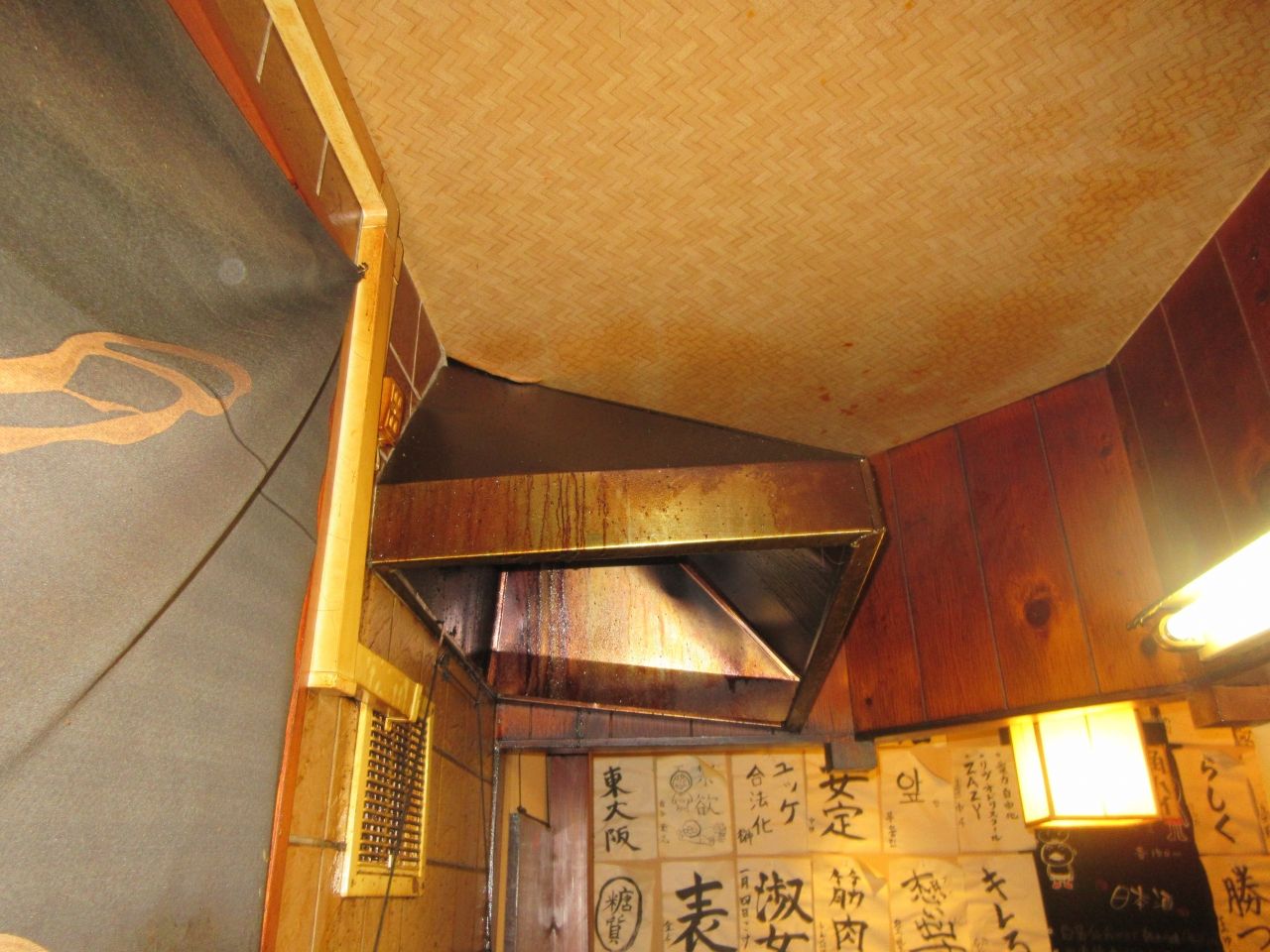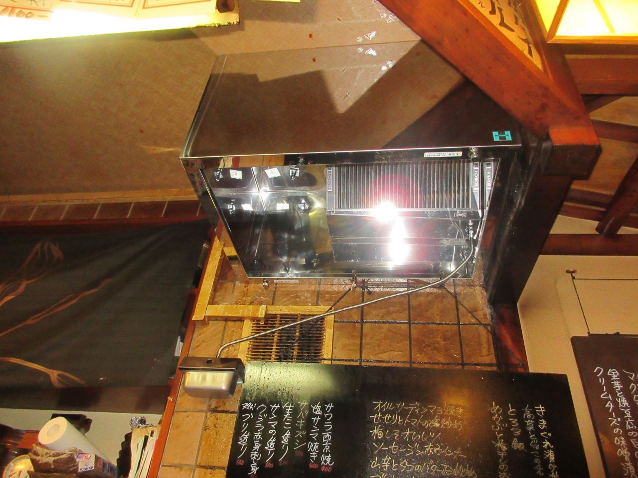 そのフード部から本来は煙を吸い上げ換気するはずですが、いつの頃からか煙を吸い上げる事がなくなり、入口を少し開け換気をされていたとの事。特に冬場は充満した煙を換気する為に少し開けた入口から冷たい空気が入り、かなり寒い思いをされていたそうです。
