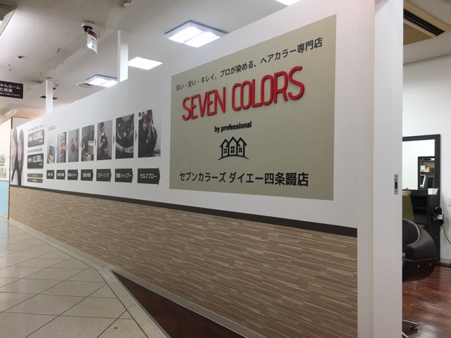 こんにちは!MDリフォーム水口です。先月下旬に四条畷のダイエーグルメシティ2Fにヘアカラー専門店『SEVEN COLORS』がオープンしました。そして今回こちらのお店の電気工事をさせていただきました。地域で初のヘアカラー専門店でダイエーの2Fなので、お買い物のついでにヘアカラーできるのが良いですね~♪