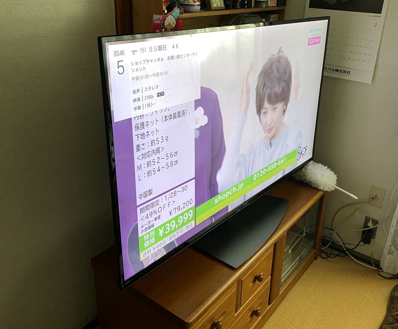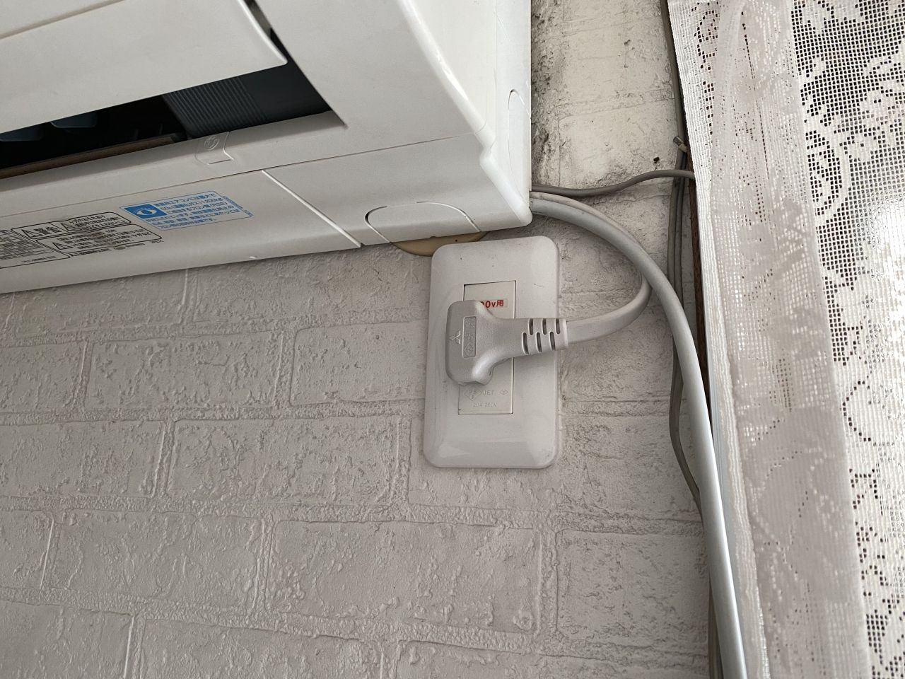 室内の写真。エアコン室内機からケーブルを引き込み、テレビへ接続