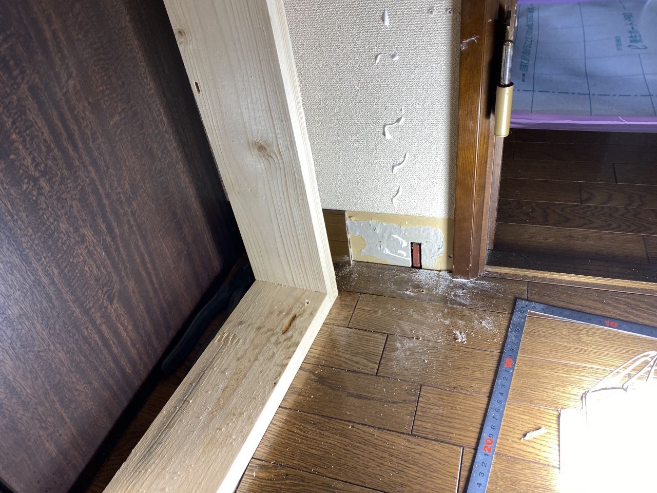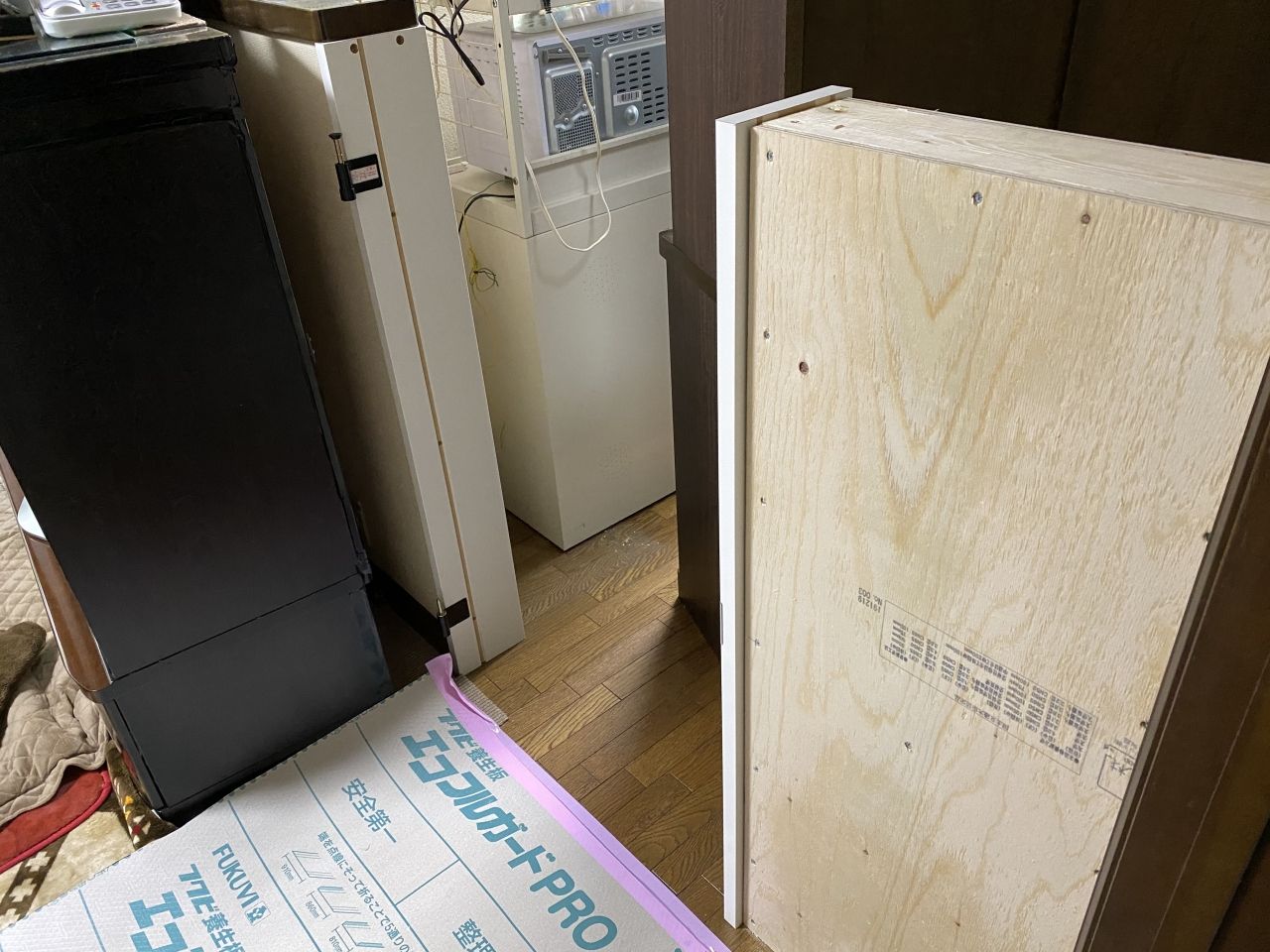 リビング(奥側)とキッチン(手前側)の間に扉を取付
