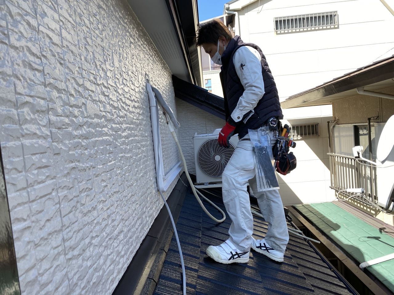 壁裏の屋根に据え付けてあった室外機の撤去に少し手間取りましたが、それ以外は何の問題もなく2時間弱くらいで作業は終了。丁寧な作業にもかかわらず早く終わったことに少し驚かれていたお施主様でしたが、キレイになったエアコン・換気扇に喜んでられました。