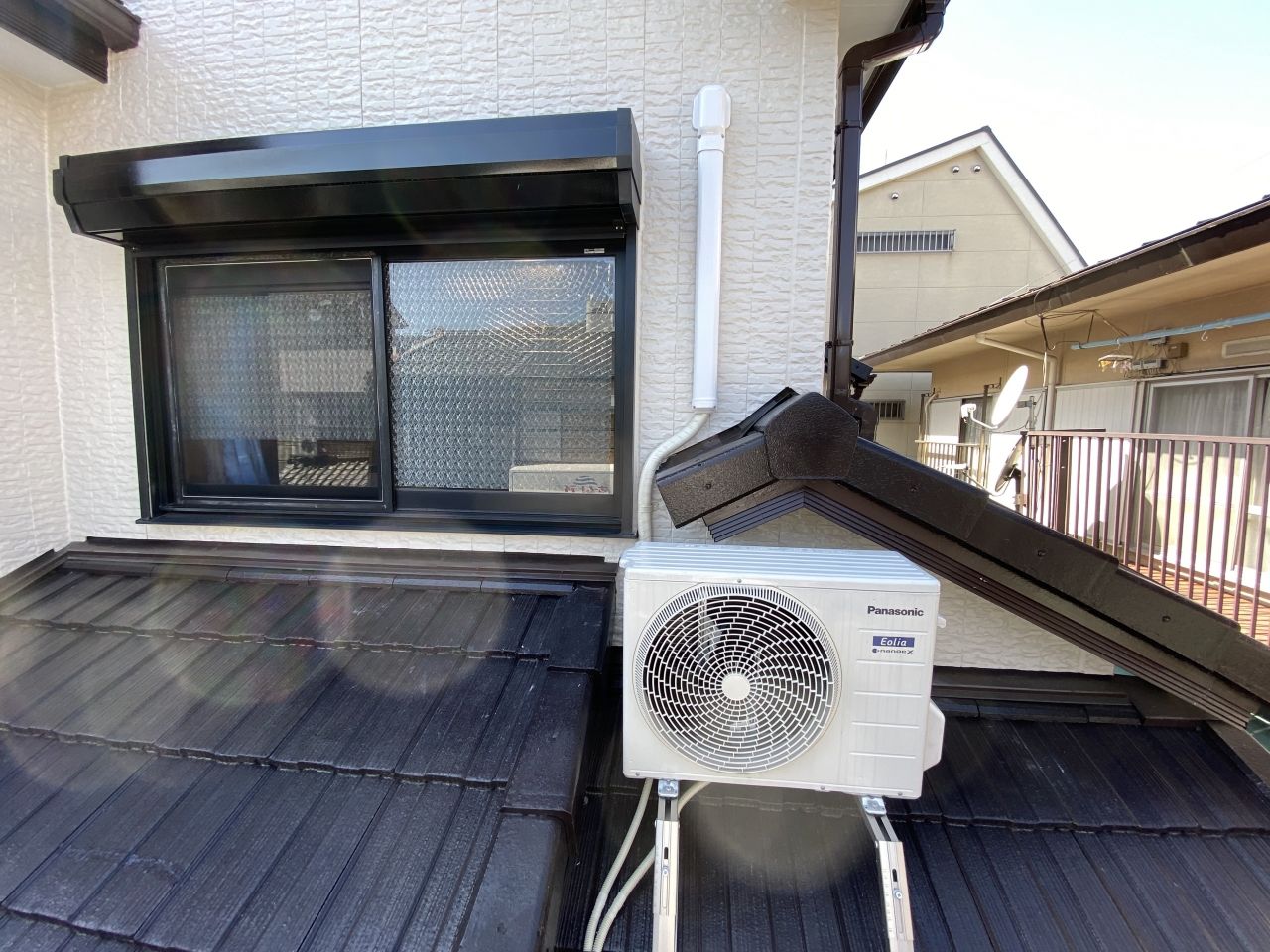室内機も窓側に移設。室外機の音も、風通しの問題も解消しとても喜んでいただきました。