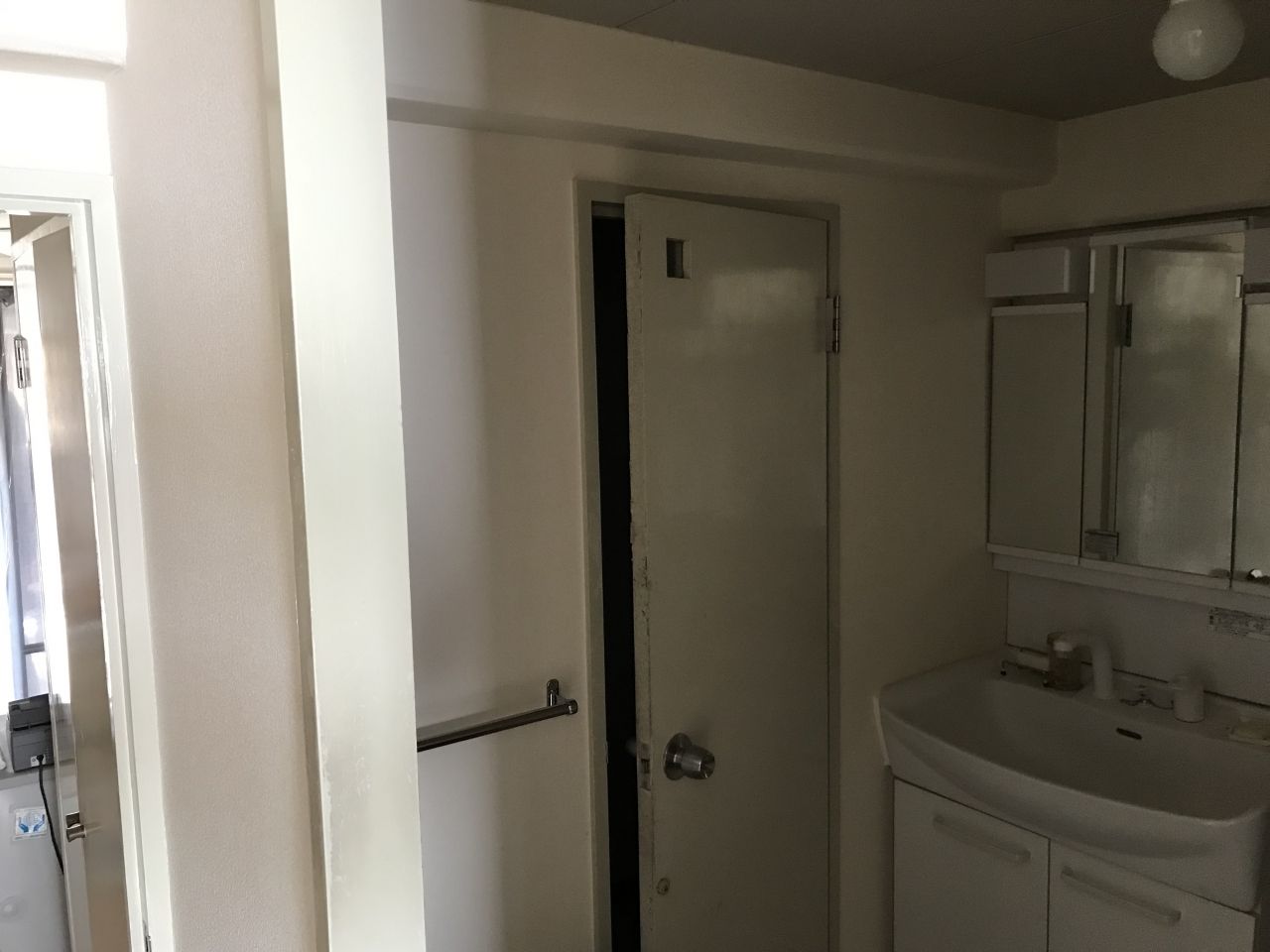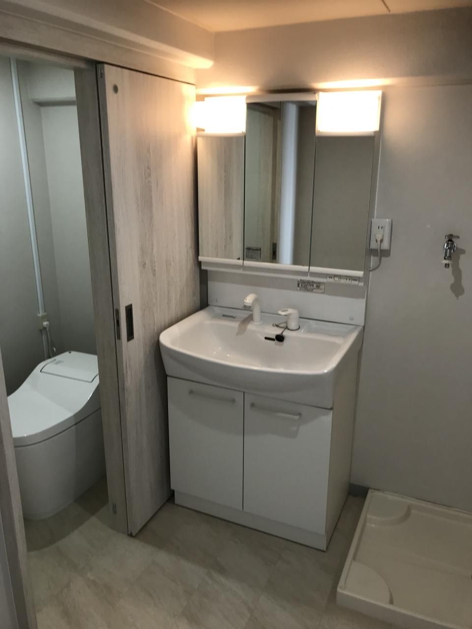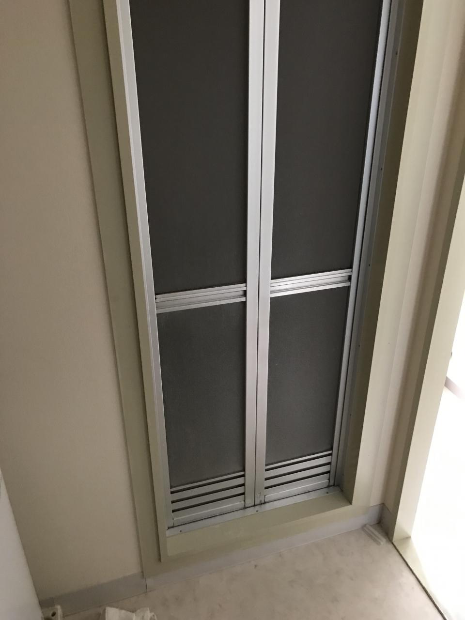 トイレの扉を開き戸から引き戸に取替。Panasonicのベリティス・上吊引き戸トイレ用片引きを採用。またクロスとクッションフロアーも貼替。トイレと洗面室のクッションフロアーを境目なく施工したことで一体感と清潔感が増しました。