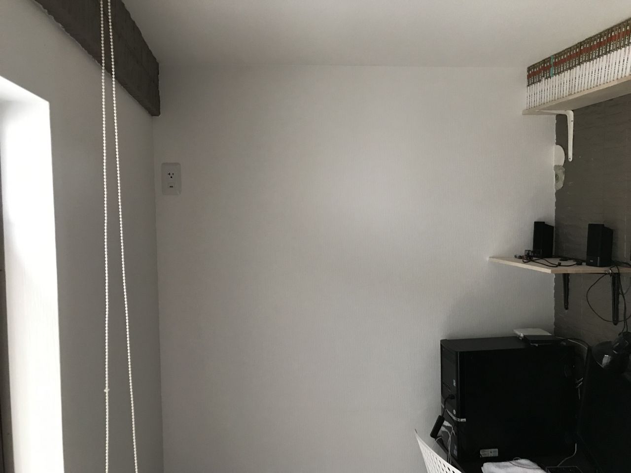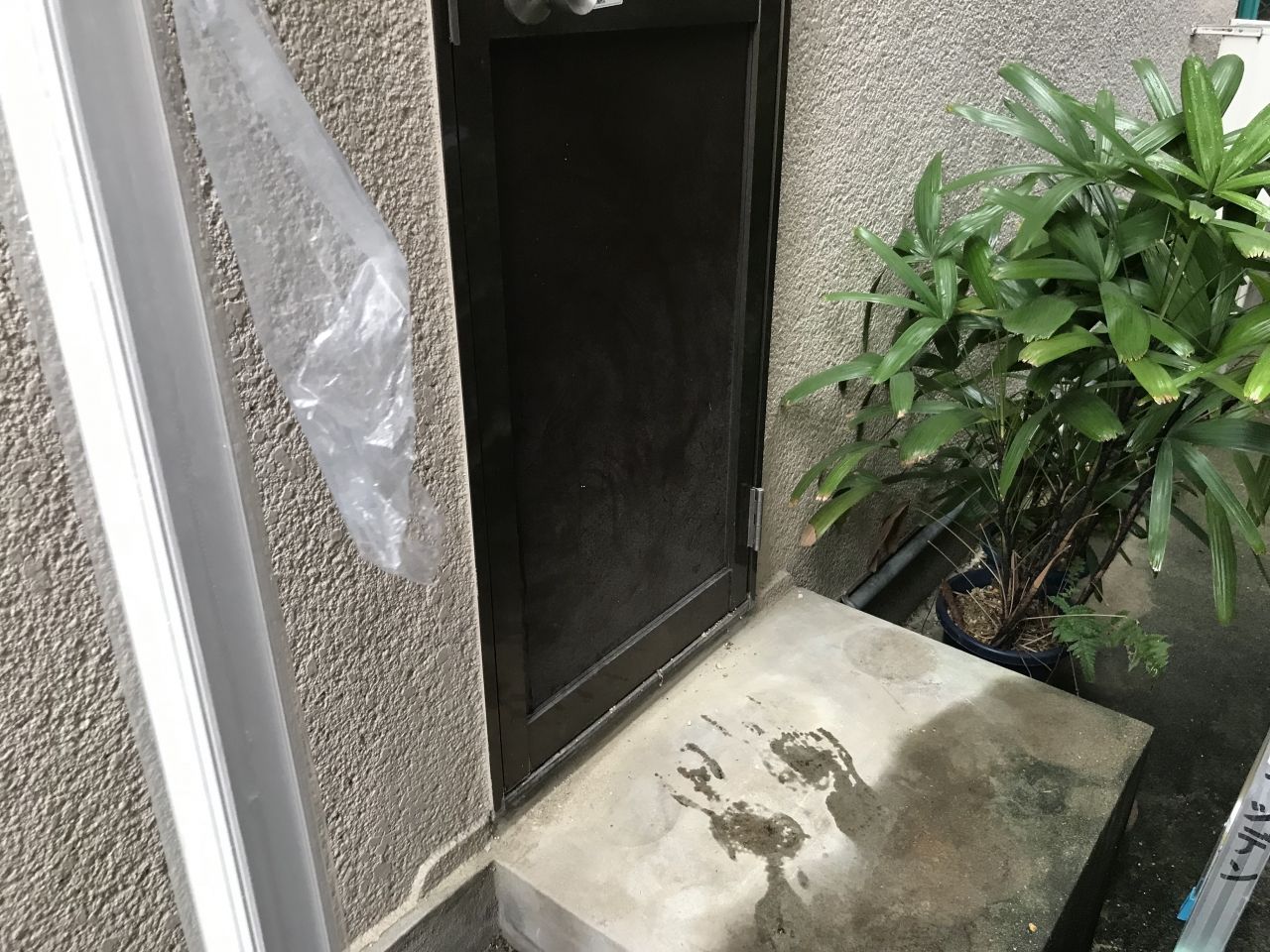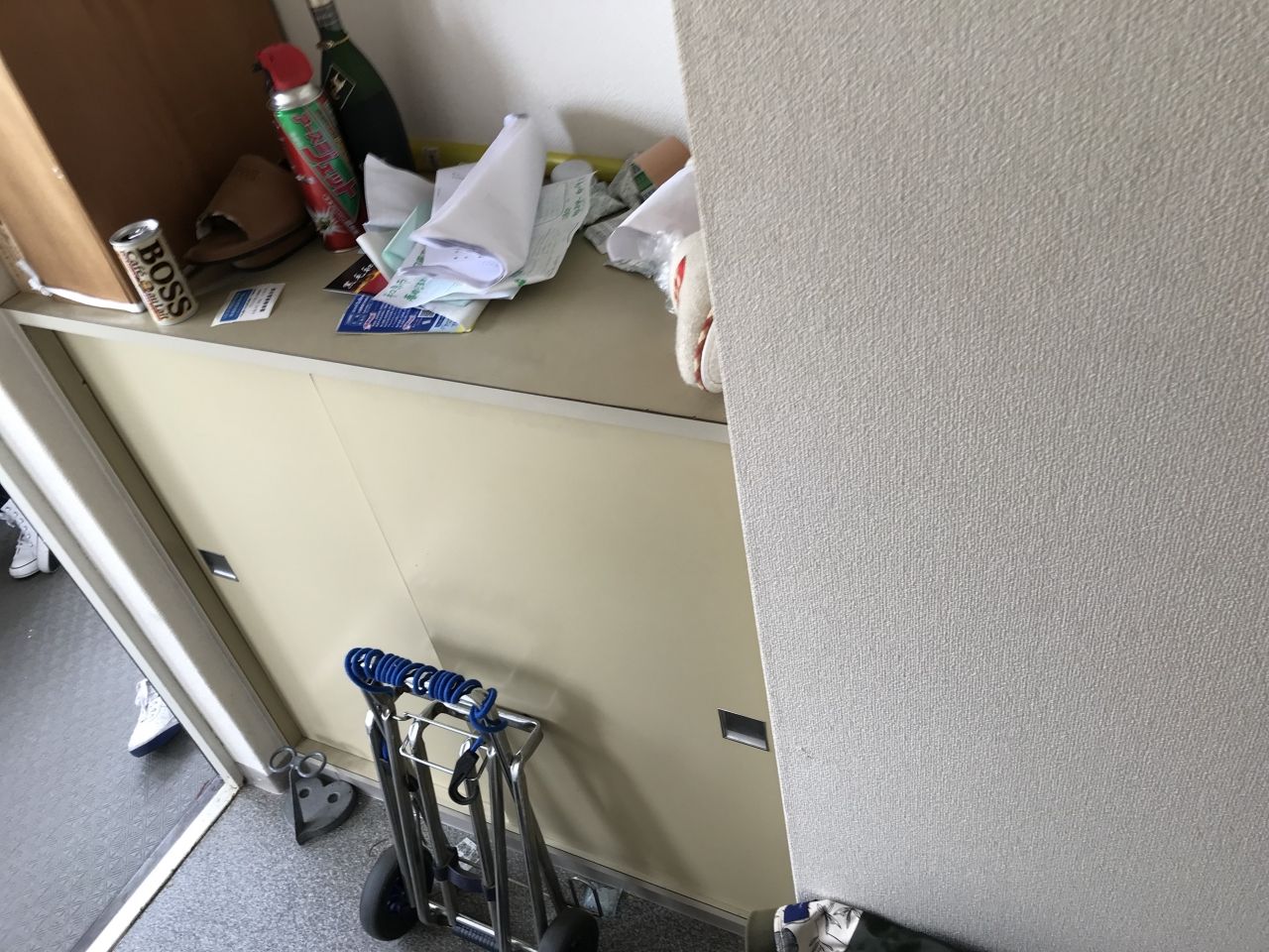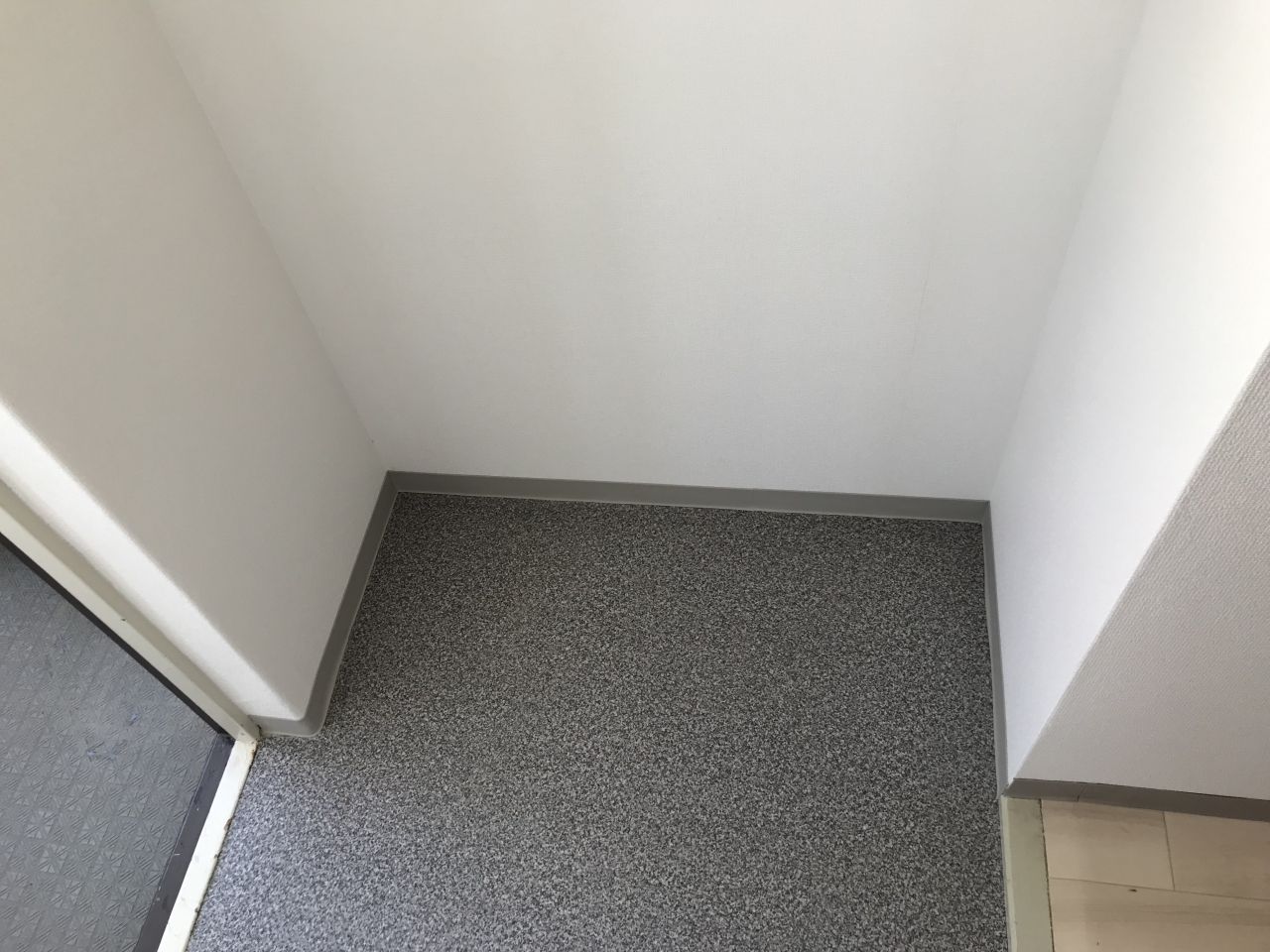 また玄関に備え付けてあった下駄箱も撤去。撤去した跡に石目調のフロアーシートで仕上げ。ちょっとしたスペースが出来たことで全体的に広く感じるようになりました。
