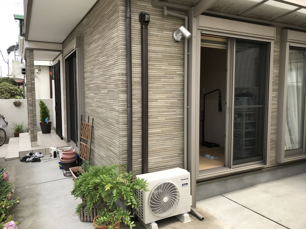 「お掃除ロボット」(自動排出方式)搭載モデルでしたので、配管カバーもお掃除ロボット対応のカバーにお取替え。