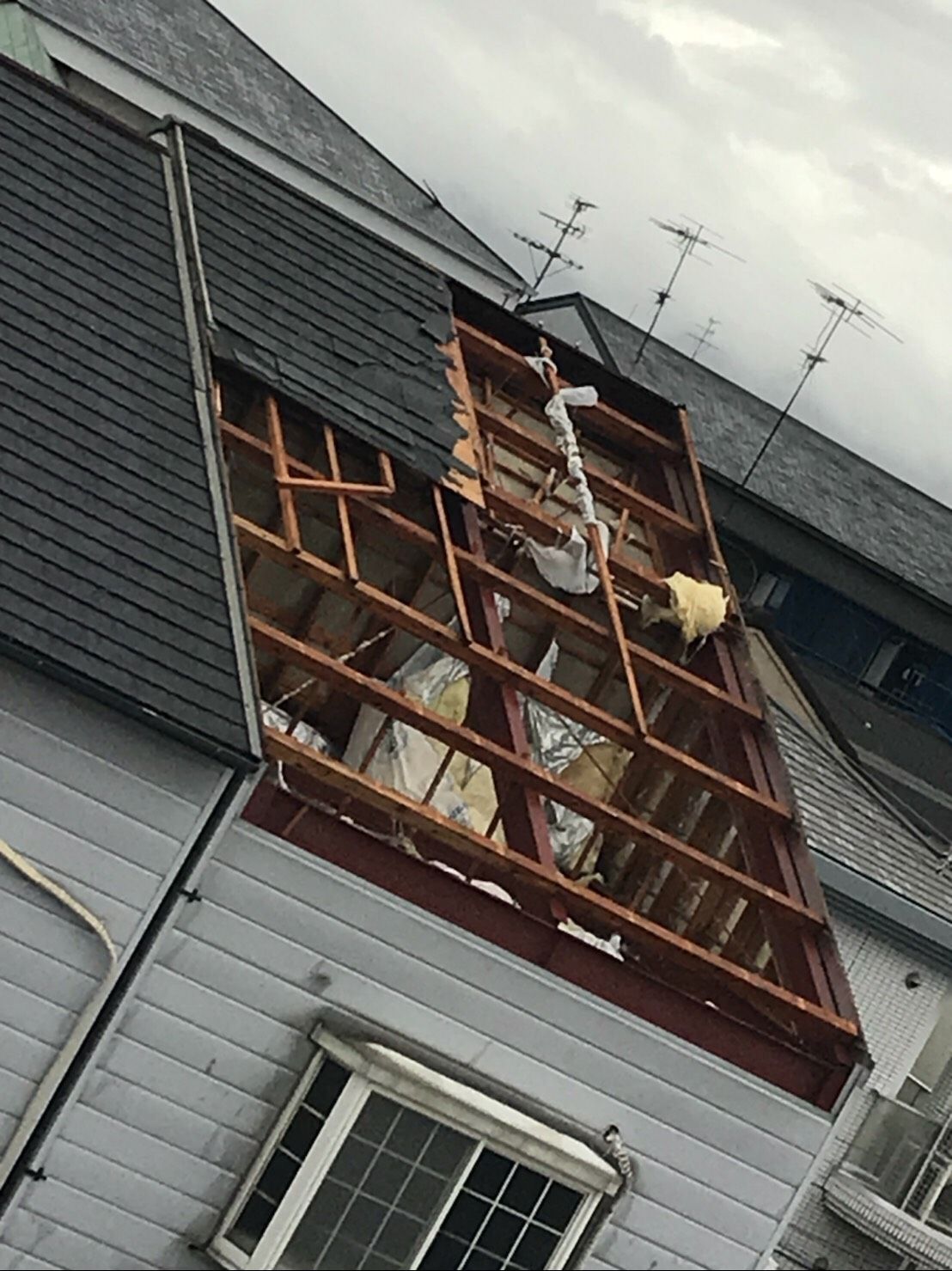 翌日直ぐに業者へ依頼し現場へ行ってもらったものの、どこもかしこも屋根材が捲れたり、瓦が飛んで行ったりし、どこもてんやわんやしてる状況。またブルーシートがどこのホームセンターに行っても売り切れで入手困難に。そんな中新たに取組みが始まった業者の担当者が、いち早く対応。なんとかブルーシートの確保から応急処置までしてくれました。