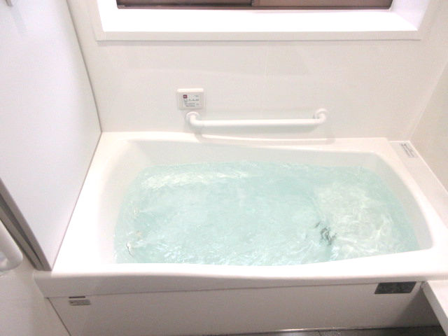 浴槽にお湯をためてテスト中ヘルシージェットバスです。