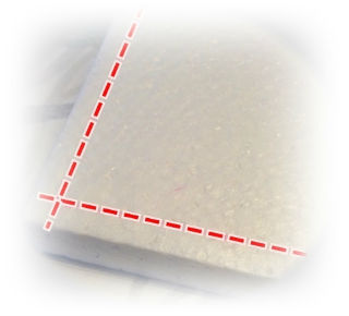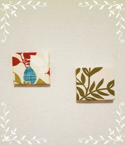 発泡スチロールも100円です!好きな大きさにカットして裏に写真の赤い点線のように切込みを入れて生地を挟み込むだけで簡単にできます。発泡スチロールは軽いので縫い針の半分くらいを壁の2箇所に挿してそこにパネルを挿すだけでとまります。興味のある方は是非作ってみて下さいね!