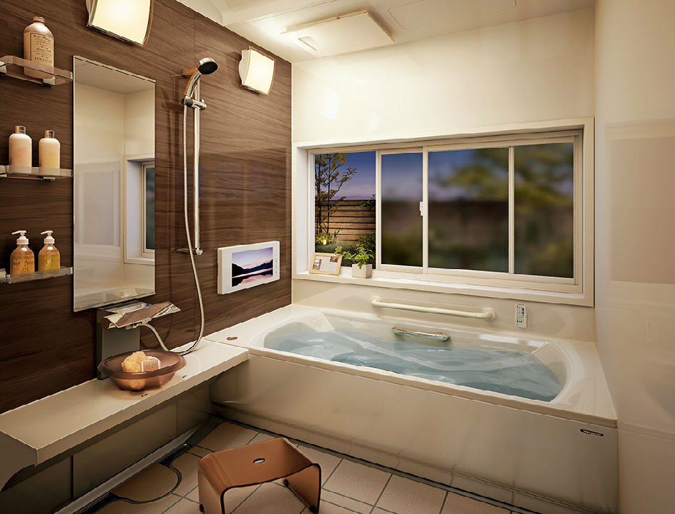 ゆったりと温泉気分を味わうバスルーム【老舗旅館の名湯のように】