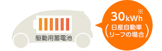 ・三菱自動車工業i-MiEV(16kWh)、日産自動車リーフ(30kWh)を走る蓄電池として活用。