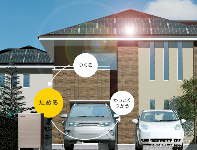 つくる⇒ためる⇒かしこくつかう。HEMSとの連携や、万が一の停電にも備えることができる。熊本で発生した地震でもこのシステムを導入されていた何軒かの家では通常と変わらない生活を送ることができたとの話も・・・。