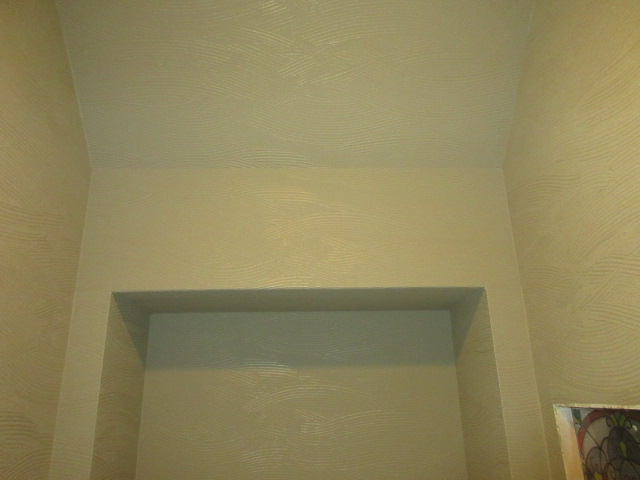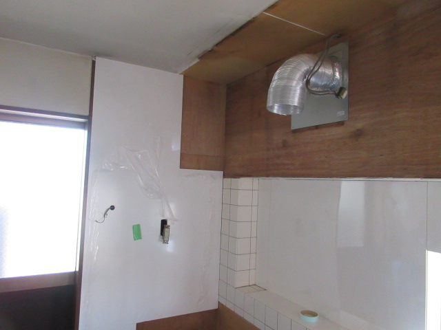 2日後、そのお施主様から「壁、下げたからまた見にきてや」との電話。すぐ見に行かせて頂くと、背面の壁が200程後に。「これならスッキリ収まるやろう」と。材料の選定から搬入、カットなど全てお一人で施工されたとの事。