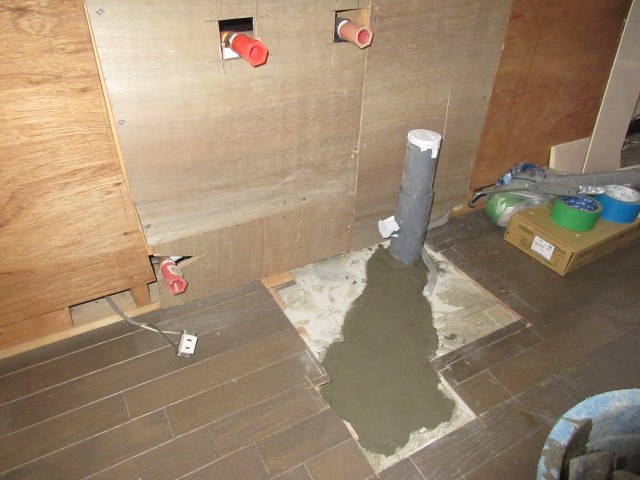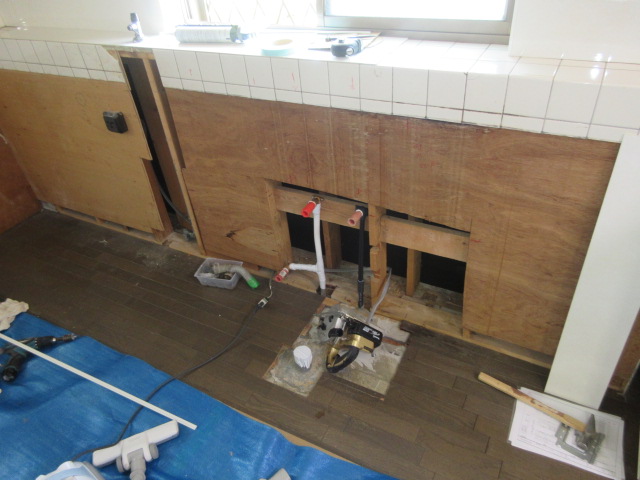 ただ、もともと壁から530あった排水芯をさらに200程後ろへ下げることになり、リフォームタイプの配管では対応できないので、排水芯の移動工事も一緒にさせて頂きました。