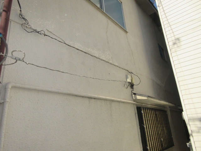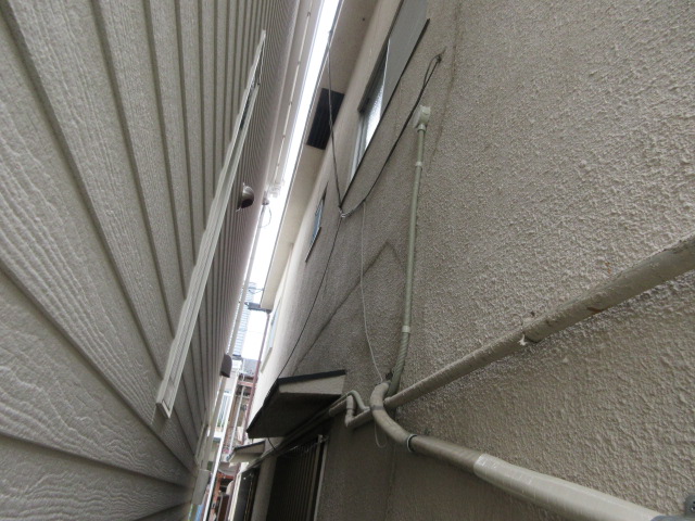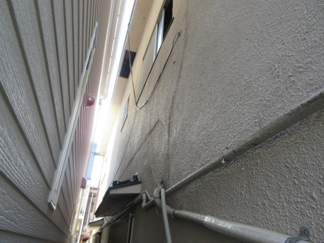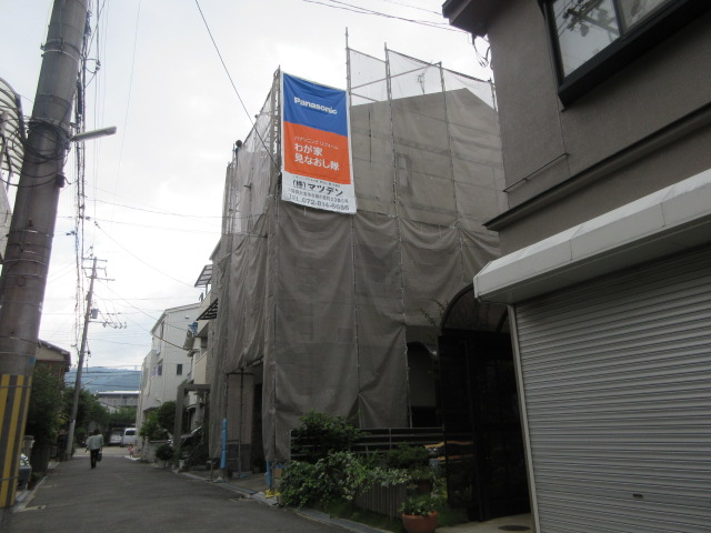 今、四条畷で外壁塗装をさせて頂いています。当初、破風板の剥がれ補修のご依頼でしたが、外壁に数か所、クラック(裂け目、ひび割れ)があるのを発見。今後のことを考慮され今回全面塗装させて頂くことになりました。