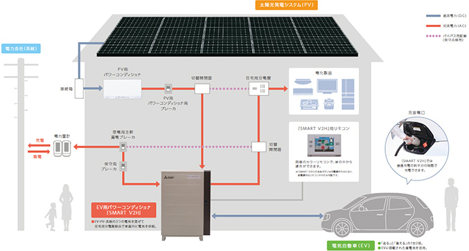 簡単に言えば、自動車を蓄電池の代わりにすることで自動車も使える。乗らない時は自宅で作った電気をためることが出来る。