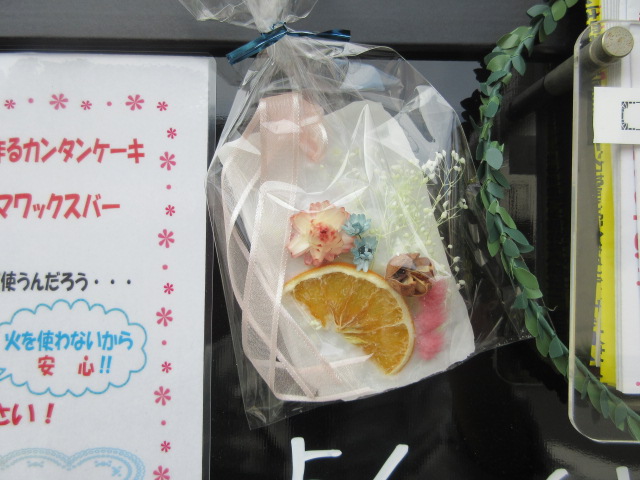 材料もほぼ100均で揃えられる手軽さ。ドライフラワーやポプリをIHで溶かし型に流し込んだロウに思い思い浮かべ、世界に一つしかないアロマワックスバーが出来上がりました。