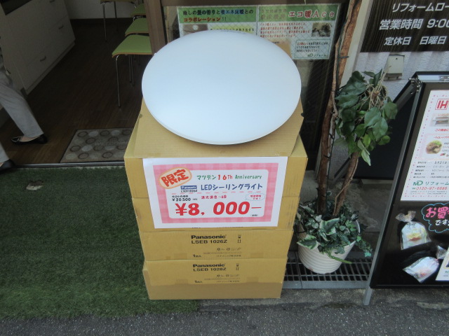 5月はマツデン創業の月。16周年特別企画としまして、LEDシーリング照明を特別価格にてご奉仕させていただいています。