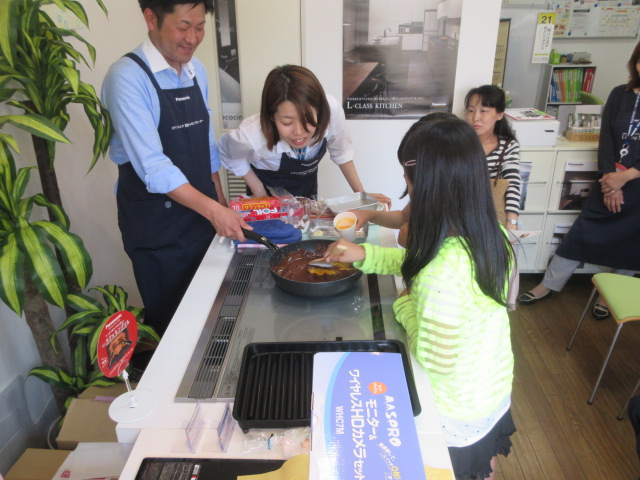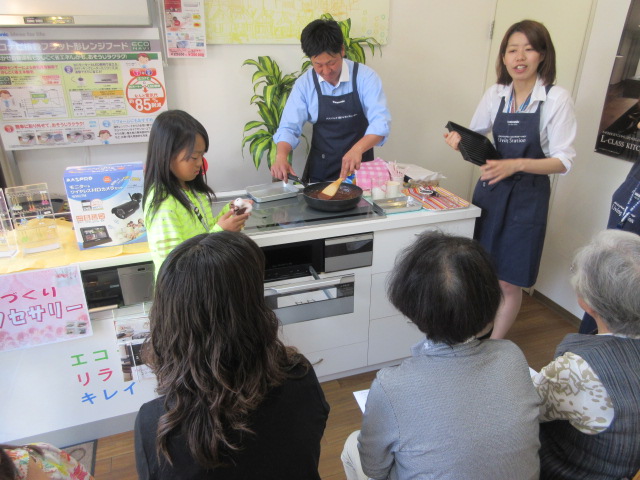 チョコレートブラウニもフライパン1つで簡単に調理出来ると言うことで、男性を代表し、たけでんの西村さんに作っていただきました。また、パナソニックの中尾さんには、グリルの便利な使い方などをレクチャーしていただき、普段IHをお使いの方も一度試してみようとまた新たなIHの使用方法を学ばれた様子でした。