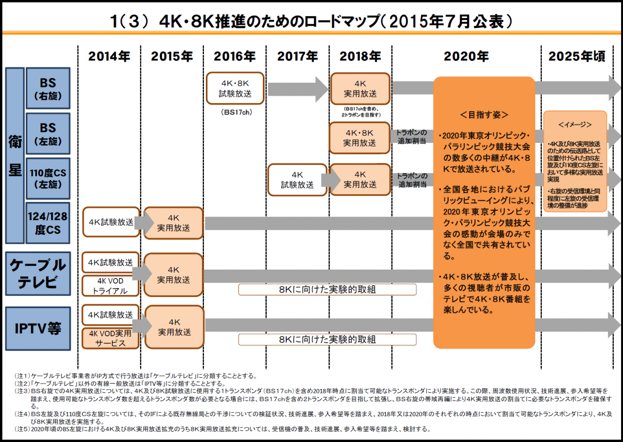 2014年の「4K試験放送」は今年度末にて試験放送の終了を発表した「Channel 4K」を表しています。