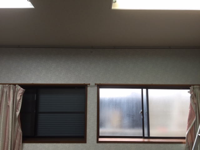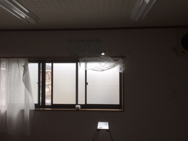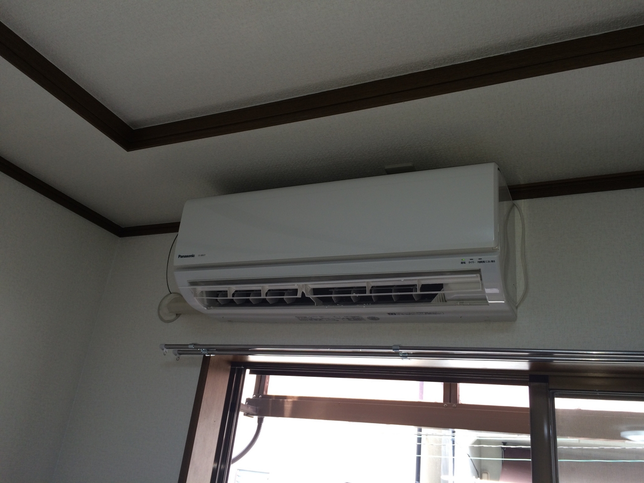 もともと天井についているエアコンがあるんですがつかわないとの事で壁にルームエアコン取り付けという工事でした。