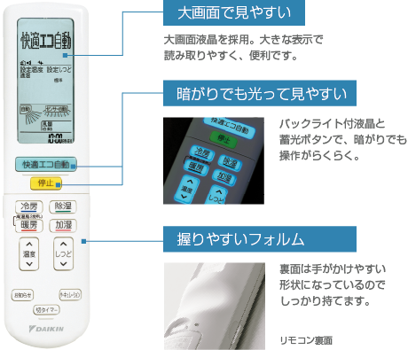 バックライト付き大型液晶と光る蓄光ボタンで、