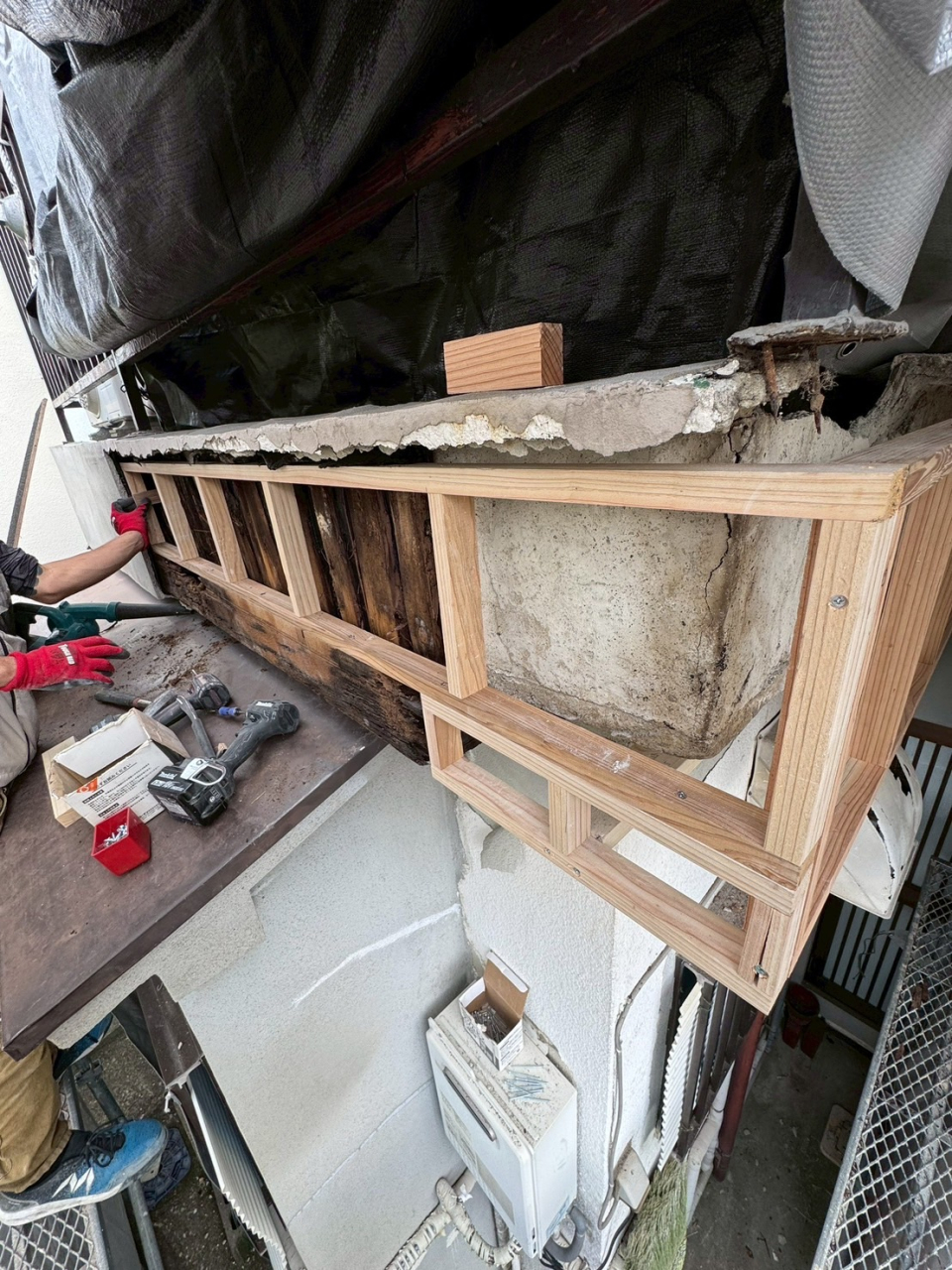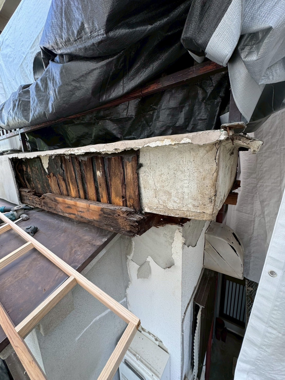 長年の漏水でベランダの一部が破損してしまいこのままでは危険なのでご依頼いただきました。